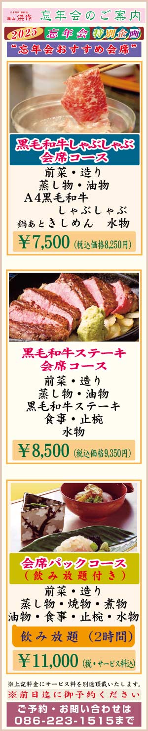 JAPANESE FOOD & TEPPANYAKI OKAYAMA HAMASAKU TEL 086-223-1515 岡山県岡山市北区表町2丁目7-65