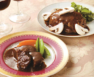 - ビーフシチューソースハンバーグ