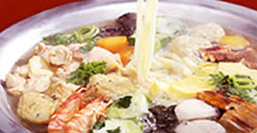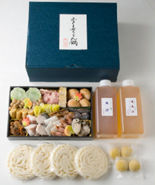 岡山浜作のにぎわい豊かなうどん鍋。鯛、さわら、穴子、牡蠣等の海の幸をふんだんに取り合わせました。讃岐うどんと上品な出汁でお楽しみください。